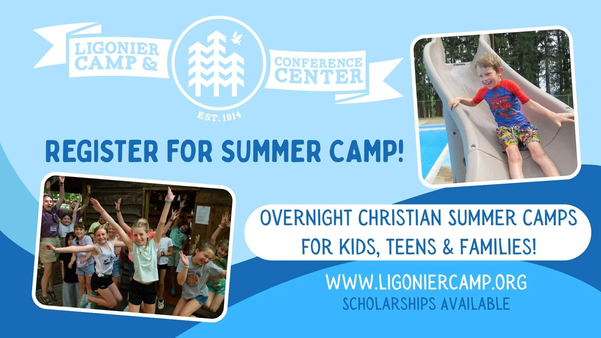 Ligonier Camp and Conference Center is an awesome Christian summer camp located in the beautiful Laurel Highlands of Pennsylvania. They offer a wide range of overnight programs for campers from rising 1st through 12th grade, as well as Family Camp! Camp provides a unique chance to step away from everyday distractions, grow in faith, build meaningful relationships, and create lifelong memories. Registration is open now and can be completed online at LigonierCamp.org. Don’t wait, several summer sessions are already beginning to fill!